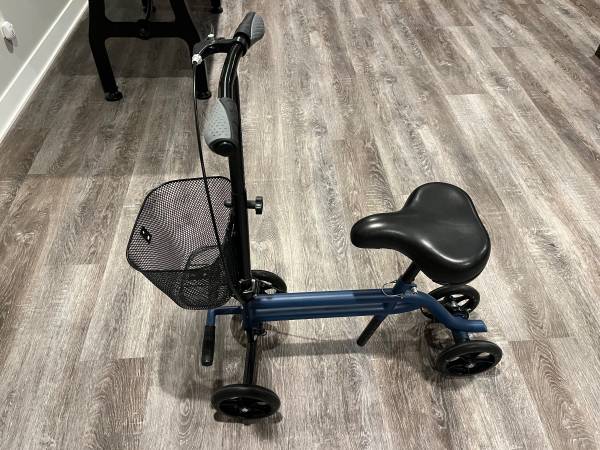 Like new 4wheel mobility scooter. Scooter has a hand brake, and front peg to elevate leg. Used for a brief period while non weight bearing during recovery from tibia spine surgery. Like new. Cash...