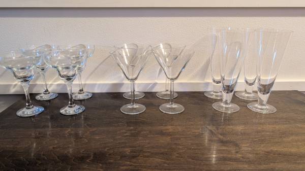 12 Glasses- 4 Margarita, 4 Martini & 4 Pilsner Glasses. Pick up in Owatonna.