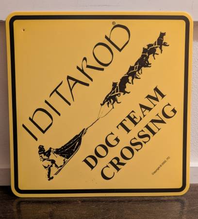 Hard Plastic “Iditarod” Dog Team Crossing Sign. 12 x 12. Pick up in Owatonna.