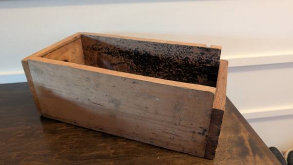 Old Wooden Box- great for décor. 19 ½ L x 9 ½ W x 7T. Pick up in Owatonna.