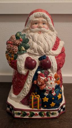 Santa Claus Cookie Jar- 11 ½ Tall. Made by Tre Ami. Pick up in Owatonna.