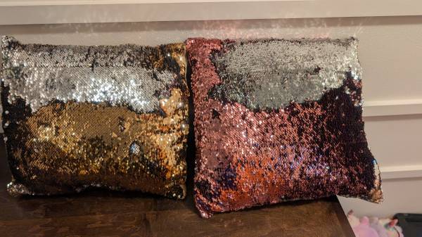 2 Sequin Flip Pillows- Only used for decoration- pet & smoke free home. It is $5 total for both. Pick up in Owatonna.
