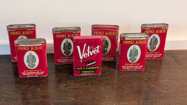 VTG Prince Albert & Velvet Pipe & Cigarette Tobacco Tins. Pick up in Owatonna.