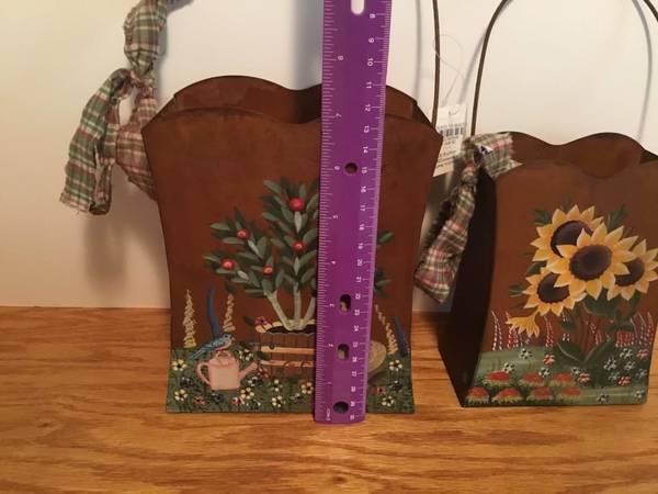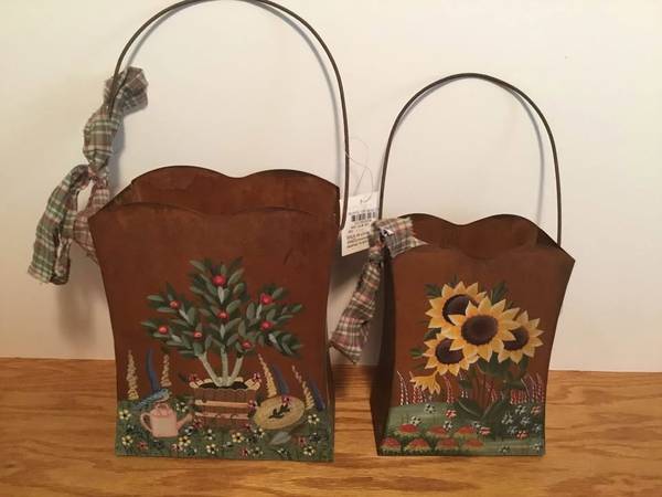 Autumn Fall Tin Baskets Decor ~ Sunflowers, Birds, NWT