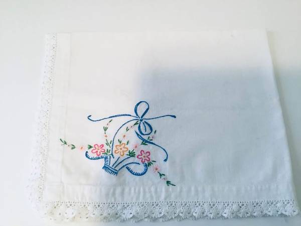 Blue Basket With Flowers Design Dresser Scarf Dresser scarf or table topper blue basket with flower design crochet lace trim one tiny hole pick up at my home in Plainview 507-216-5 three three 4- no...