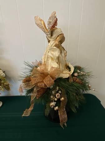 NEW - Beautiful Angel / Metallic Golds Centerpiece-Arrangement Mixed Greens, Metallic Gold Ribbons, Gold Frosted Berries, Pinecones. 26" Tall x 18" Wide Great Hostess, Employee, Friends Gifts! Door...