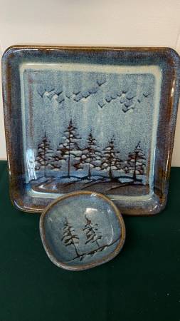Pottery Square Tray and Bowl Tray- 11 1/4" x 11 1/4" Bowl- 2" High x 5 1/2" Round Signed Door Pick Up