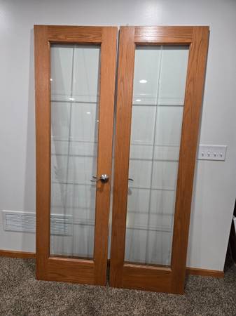 Two interior French doors, solid oak. Each door measures 24" x 80".