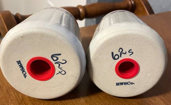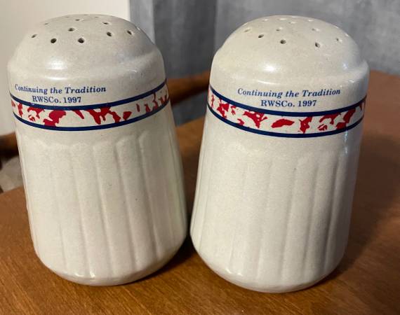 1997 Redwing Greyline Stoneware Spongeware Salt And Pepper Marked on bottom