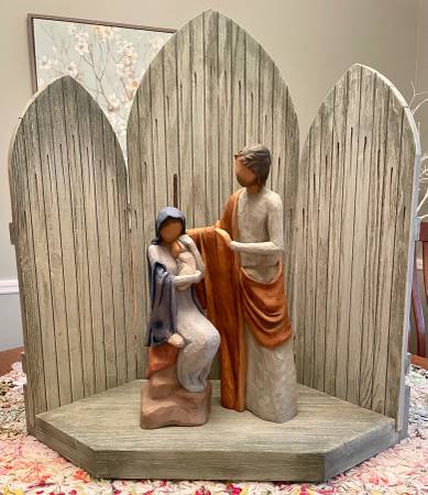 LARGE Willow Tree The Christmas Story Sanctuary Display Stand And LARGE JESUS AND MARY FIGURINES Mint condition 150.00 OBO