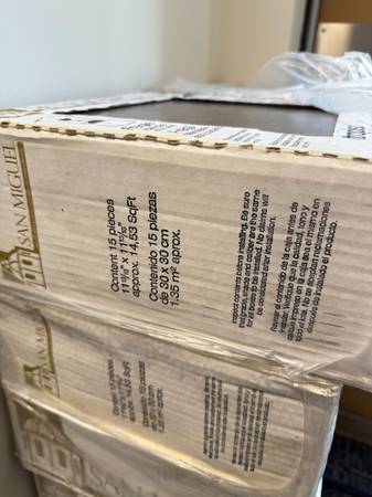Selling 16 full boxes of San Miguel Vitropiso glazed ceramic floor tiles.