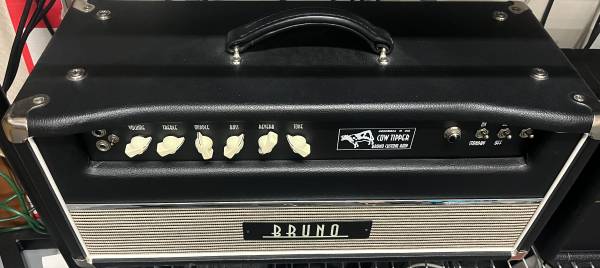 Bruno Cow Tipper 45 in very good to excellent condition. Comes with the stock (rare) Normal/Bright Channel switch, Reverb and Reverb Tone controls, 4 and 8 ohm input with extension.