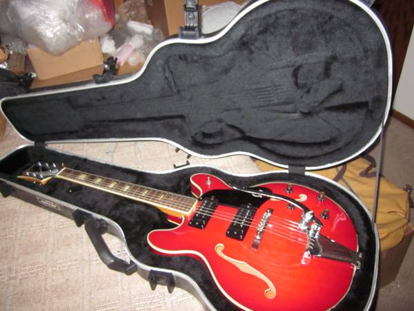 Like new SKB Thin Line Electric Guitar Case. Fits 335-type guitars with hollow and semi-hollow bodies. Has TSA 002 lock. 1972 Epiphone EA250 for demonstration purposes and not for sale