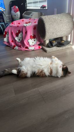 Angel is a female cat that needs to be rehomed. She is very friendly. She is shy at first but will get comfortable fast. Unfortunately she isn’t good with other cats. She is fine with kids and dogs. I’m not sure of her age we found her on the streets when she was a kitten. $50 rehoming fee