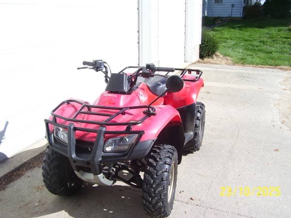 2007 Honda 250 ATV 4 wheeler. Tires have very little wear. Electric shift, hitch and rear view mirror. One owner. Calls only.