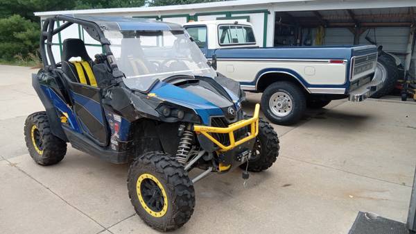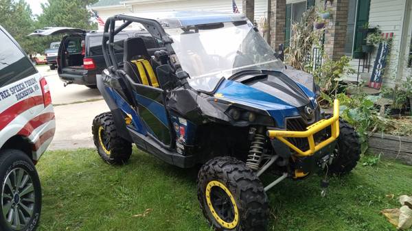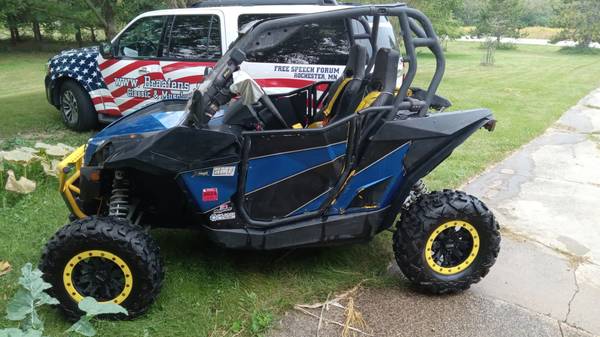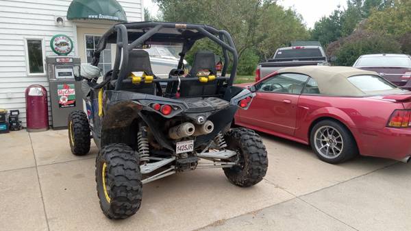 You are looking at a 2013 Can Am Maverick 1000 4x4. Side by side, improved lap and chest belts. brand new aluminum beadlock wheels , new tires, new battery, new seat beats, chest belts.Machine does have windshield, steel doors and roof with roll bar, adjustable side mirrors and large rear view mirror on top of windshield.Tilt wheel and gauge pod,We just took this one on trade on a vintage Mustang. THis is a fun machine for you and companion. Come and check it out. This unit only has a little over 3000 miles. Very clean machine.