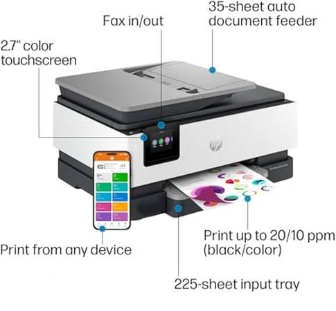 *Fast color printing, scan, copy, fax, auto 2-sided printing, auto document feeder, and a 225-sheet input tray.