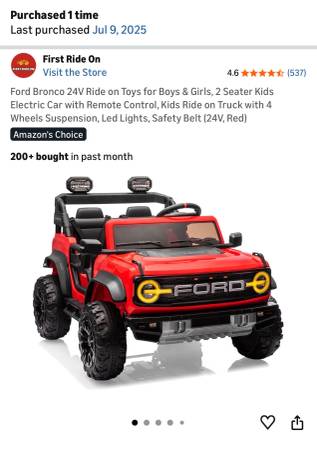 This is an almost brand new ride on toy from Amazon with remote control, bought for our grandkids who only used for 2 weeks during this summer visiting.
