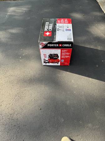 6 gallon pancake air compressor with 18 ga brad nailer. 150 psi. 2.6 SCFM. Also includes NEW in box Avagard quick start air hose kit.