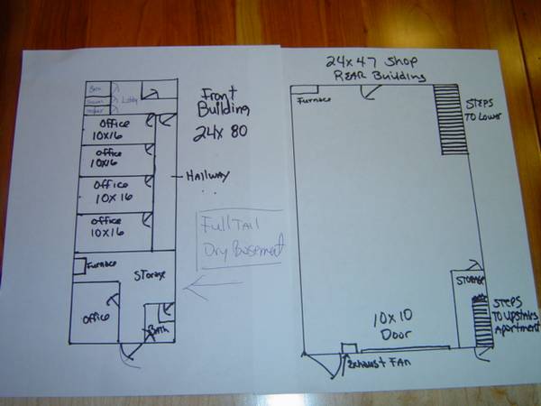 Back building is a 49x25 insulated shop area. 10x10 insulated roll up with 36" walkin door. 200 amp service, 220v plug along with airlines, air dryer, air hookups around shop. Compressor (220) in basement. Two large I-beams for overhead hoist , drain, exhaust fans. Shop can fit 4 cars tight. Full basement , dry, tall. extra storage. New main sewer, new main water brought into building should you ever need it. Current mains are great but street was tore up and I had crew install backup while street was tore up. 1500-2000 /month (rented)