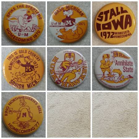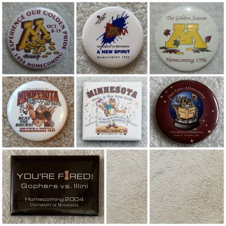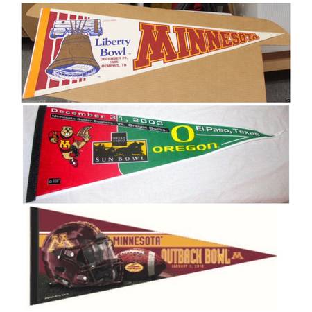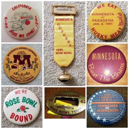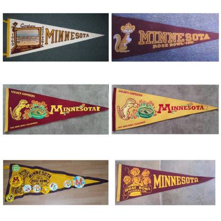 Looking for Minnesota Gopher Football Memorabilia for my personal collection. Have been a collector for over 30 years. Looking for homecoming buttons, stadium buttons, pennants, lapel pins, patches, bowl game collectibles and other related football memorabilia.