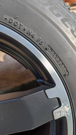 Set of 4 - 17x8 Monte Titano - Black with machined lip, 5-127 bolt pattern, ET45 offset - Winter Tires Bridgestone Blizzak WS80 225/65R17 102H w/2014 date code, 30k Miles - 10 winters on 2013 Chrysler Town & Country - Includes 433Mhz TPMS sensors