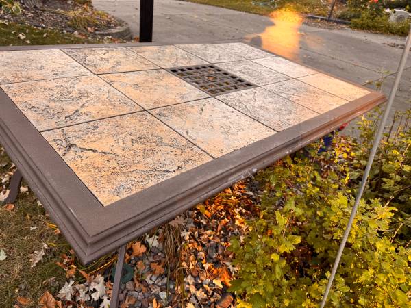 Tiles are removable and replaceable if you’d like. When the tiles aren’t in the table, it’s quite heavy and it’s never blown over. When they’re removed it’s easily moveable.